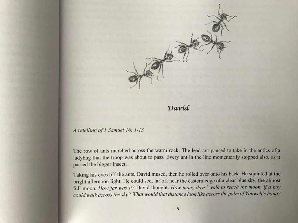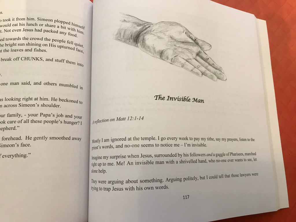 My retelling of Bible stories helps readers of all ages put themselves in the time and place of the events. One way I do this is to find a child. It can be the child of the biblical story, for example the boy who gave his lunch to Jesus to feed 5000. Or I insert a child where there may have been one. Such as the two brothers who walked by Ezekiel every day as he lay on his side with a clay depiction of Jerusalem before him. Or Sophie, who drew pictures as the apostle John told her of his visions.